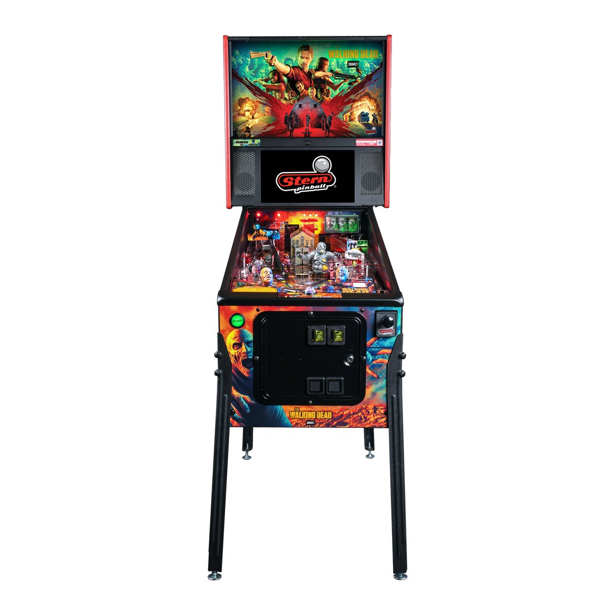 The apocalypse has returned—bigger, bloodier, and better than ever. The Walking Dead Pinball is a remastered edition of one of the most beloved pinball machines of all time, originally released in 2014. Designed by the legendary duo John Borg and Lyman F. Sheats, Jr., this modernized masterpiece rises again on Stern’s powerful SPIKE 3 platform.
