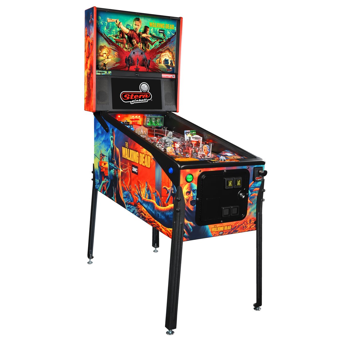 The apocalypse has returned—bigger, bloodier, and better than ever. The Walking Dead Pinball is a remastered edition of one of the most beloved pinball machines of all time, originally released in 2014. Designed by the legendary duo John Borg and Lyman F. Sheats, Jr., this modernized masterpiece rises again on Stern’s powerful SPIKE 3 platform.